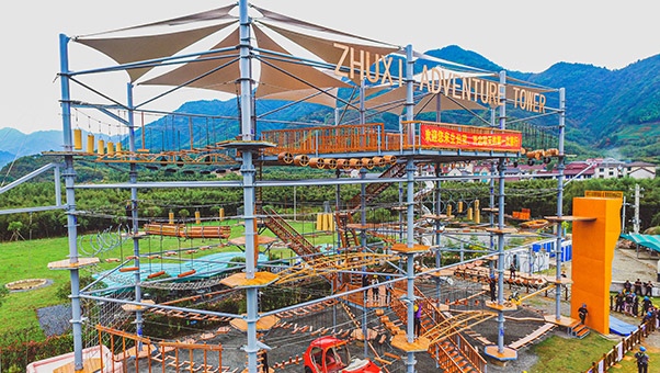 集光影聲效、廊橋水瀑、高空游樂于一體 以“云”元素打造的獨特游樂綜合項目