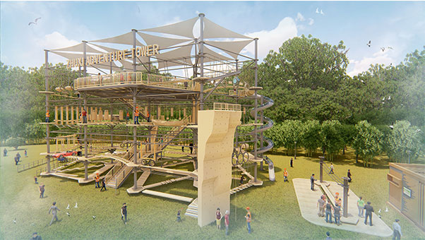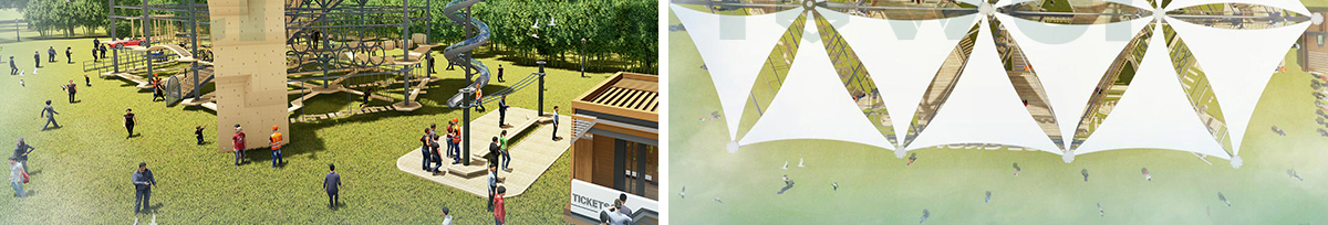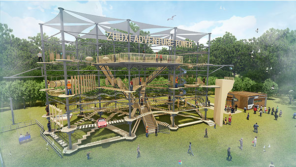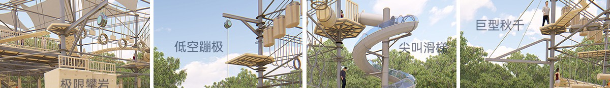本項(xiàng)目建于戶外自然景區(qū)(亦可在室內(nèi)搭建),配置上百種運(yùn)動(dòng)健身、探險(xiǎn)互動(dòng)項(xiàng)目,項(xiàng)目游樂步道設(shè)有不同難度系數(shù)的項(xiàng)目供游客體驗(yàn),是景區(qū)中一個(gè)創(chuàng)新性、地標(biāo)性的立體娛樂綜合體。該設(shè)備占地面積達(dá)到448m2,綜合用地面積達(dá)600m2,單層高達(dá)4.3m,內(nèi)部以晶體結(jié)構(gòu)搭建架空層1-4個(gè)步道層級,打造層超過680m長的空中游樂路線。