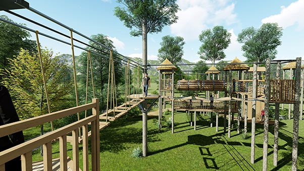 叢林穿越,結(jié)合景區(qū)獨有的茂密叢林,結(jié)合爬、滑、游、跨、跳、飛等運動,從游客的感受和文化體驗出發(fā),致力于設(shè)計和開發(fā)具有創(chuàng)新性的運動項目。以滿足不同游客的需求和興趣。我們?yōu)槊恳粭l步道設(shè)計了獨特的主題和路線,為游客營造完美的感官體驗。使游客在感官體驗上得到升華,同時深入了解自然和文化的魅力。