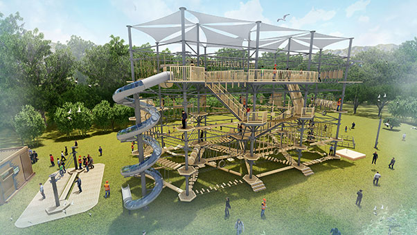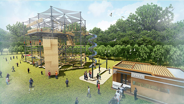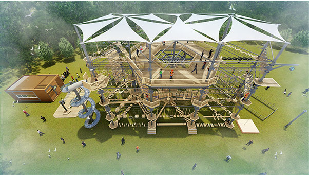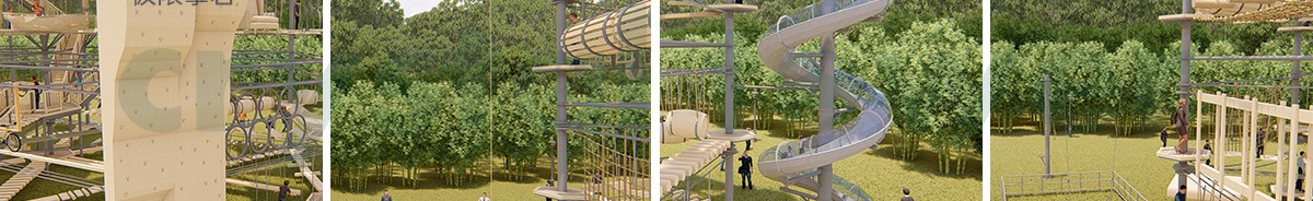 本項(xiàng)目建于戶外自然景區(qū)(亦可在室內(nèi)搭建),配置上百種運(yùn)動(dòng)健身、探險(xiǎn)互動(dòng)項(xiàng)目,項(xiàng)目游樂步道設(shè)有不同難度系數(shù)的項(xiàng)目供游客體驗(yàn),是景區(qū)中一個(gè)創(chuàng)新性、地標(biāo)性的立體娛樂綜合體。該設(shè)備占地面積達(dá)到448m2,綜合用地面積達(dá)600m2,單層高達(dá)4.3m,內(nèi)部以晶體結(jié)構(gòu)搭建架空層1-4個(gè)步道層級,打造層超過680m長的空中游樂路線。