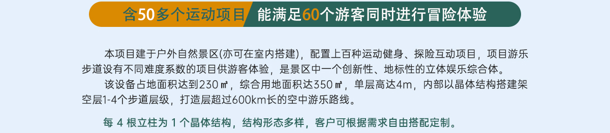 水晶塔采用晶體結(jié)構(gòu)設(shè)計(jì),每 4 根立柱為 1 個(gè)晶體結(jié)構(gòu),可根據(jù)客戶需求自由組合,晶體結(jié)構(gòu)設(shè)計(jì)更大的增加設(shè)備的穩(wěn)定性、利用率,保證客戶場(chǎng)地的實(shí)用率最大化,立柱之間做連桿支撐,根據(jù)結(jié)構(gòu)設(shè)置觀景臺(tái),可達(dá) 80~1000+m2,可作為餐飲,休閑吧,咖啡吧,酒吧等休閑休息區(qū)域,平臺(tái)下方懸空架連接桿支撐,平臺(tái)可同時(shí)承載 30~1000+ 人。