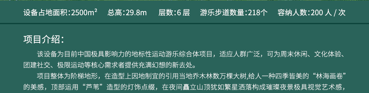 該設(shè)備為目前中國極具影響力的地標性運動游樂綜合體項目,適應(yīng)人群廣泛,可為周末休閑、文化體驗、團建社交、極限運動等核心需求者提供充滿幻想的新去處。